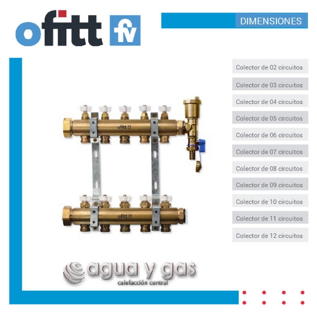 >> Producto Colectores FV Ofitt de 2 a 12 circuitos accionamiento manual con tapón en retorno