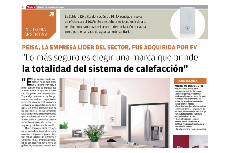 PEISA, la empresa líder del sector, fue adquirida por FV. "Lo más seguro es elegir una marca que brinde la totalidad del sistema de calefacción"
